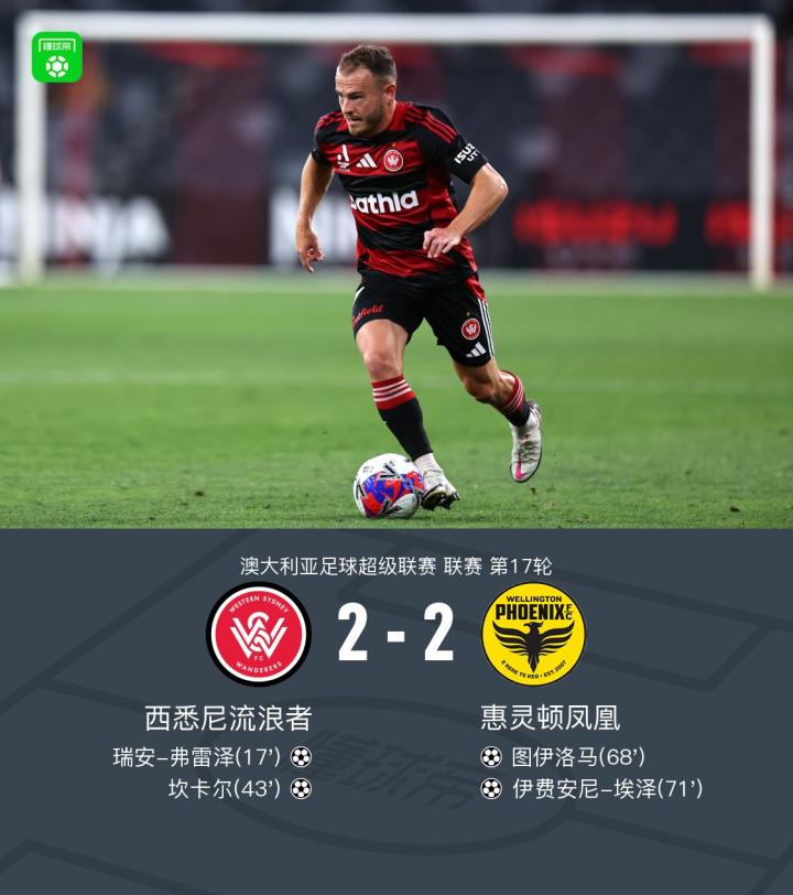 惠灵顿凤凰客场连扳两球2-2西悉尼流浪者,瑞安-弗雷泽破门