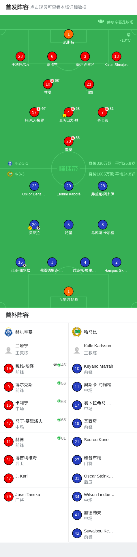 哈马比2-1赫尔辛基,诺亚-佩尔松破门,贝萨拉建功