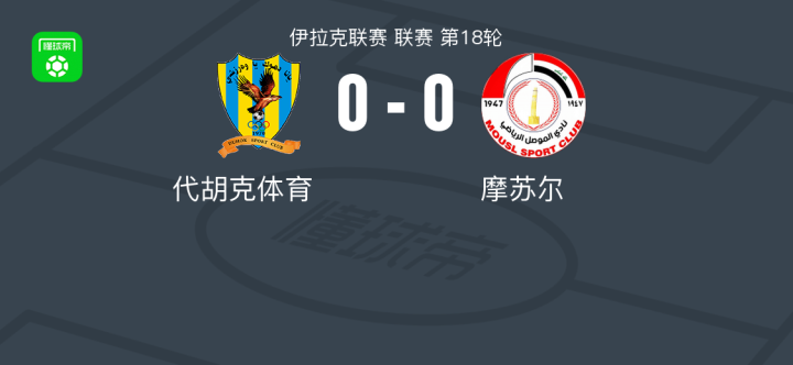 代胡克体育0-0摩苏尔,难分伯仲战报bot @懂球帝02-14 00:33北京时间2月13日伊拉克联赛 联赛 第18轮,代胡克体育主场对阵摩苏尔。最终比分代胡克体育 0-0 摩苏尔。点击查看本场比赛详细数据>>点击查看伊拉联完整积分榜>> 技术统计 展开更多