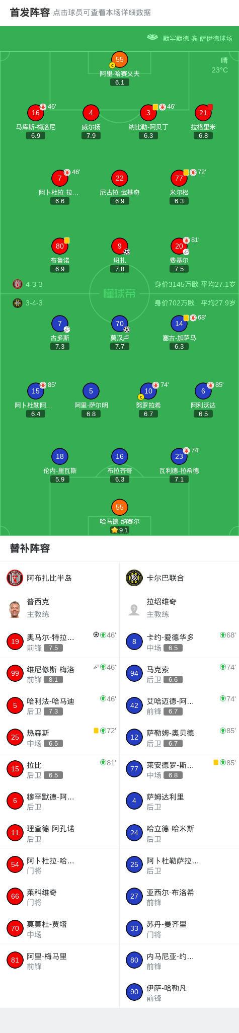 第77分钟,阿布扎比半岛球员费基尔助攻班扎打入一球。