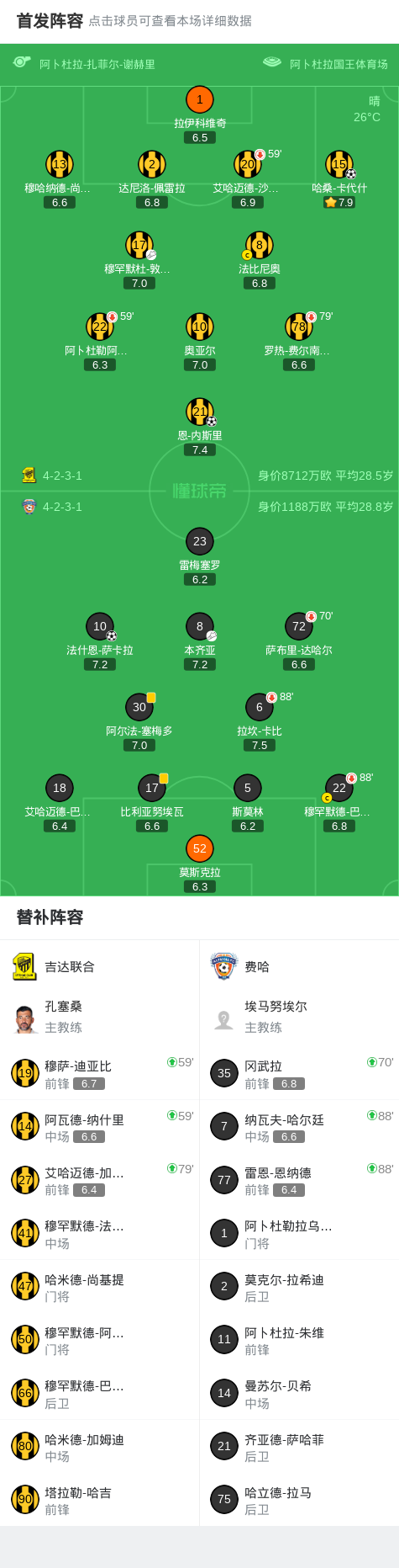 吉达联合2-1费哈,哈桑-卡代什、恩-内斯里破门