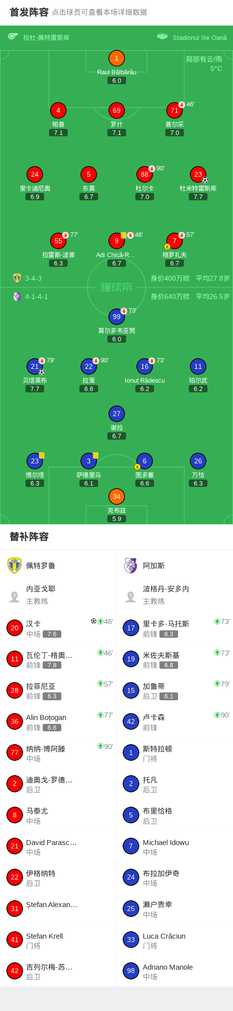 佩特罗鲁2-1逆转阿加斯,杜米特雷斯库破门,汉卡建功