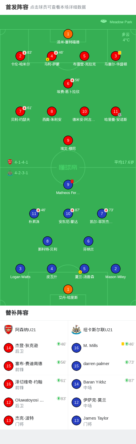 阿森纳U21 1-0纽卡斯尔联U21,哈里曼-安诺斯一击制胜