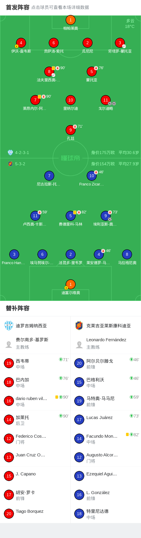 第65分钟,克莱吉亚莱斯康科迪亚球员埃利亚斯-奥坎波打入一球。