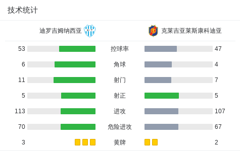 第25分钟,迪罗吉姆纳西亚球员法夫里西奥-罗哈斯助攻戈尔迪略打入一球。