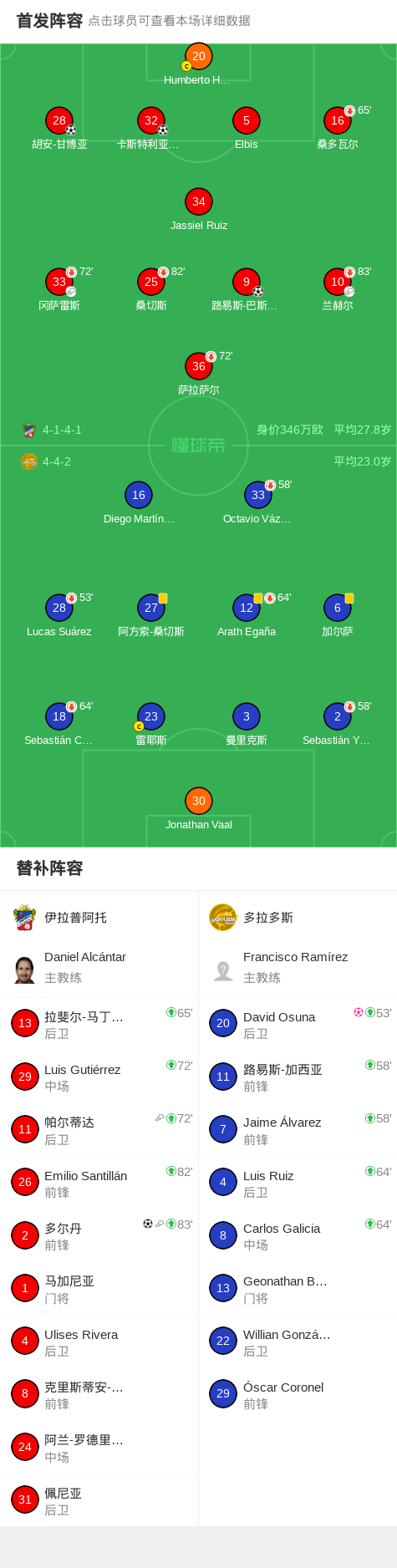 伊拉普阿托5-0狂胜多拉多斯,胡安-甘博亚破门,多尔丹替补1传1射