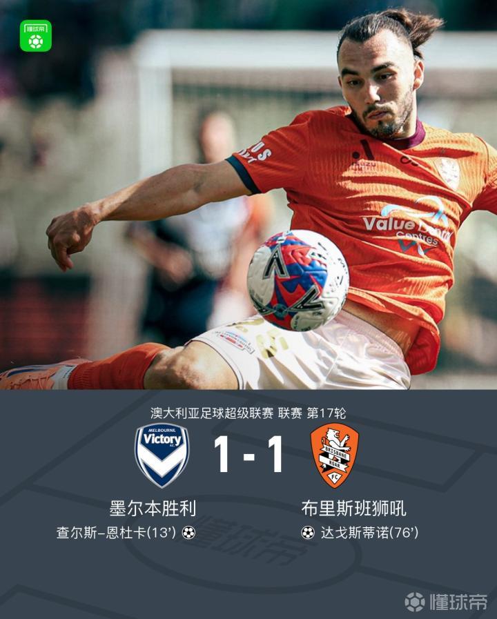 墨尔本胜利1-1布里斯班狮吼,恩杜卡、达戈斯蒂诺破门