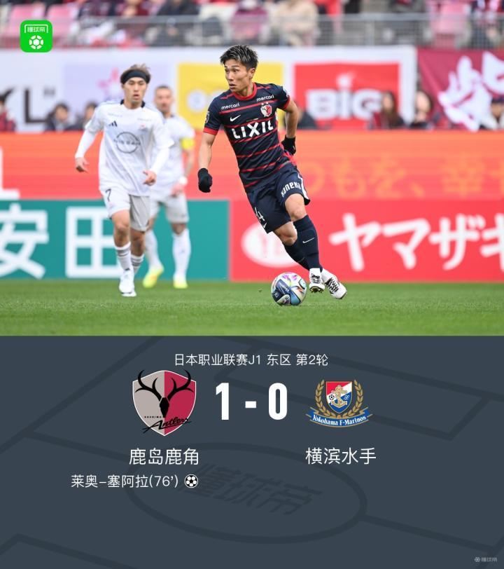 北京时间2月14日,日本职业联赛J1东区第2轮,鹿岛鹿角主场对阵横滨水手。比赛中,莱奥-塞阿拉制胜,迪恩-戴维失良机。最终,鹿岛鹿角1-0击败横滨水手。