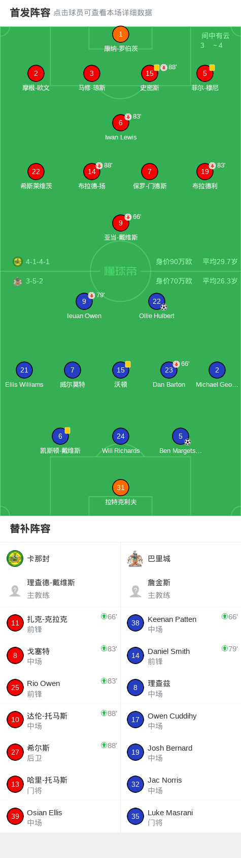 第45分钟,巴里城球员Ben Margetson打入一球。