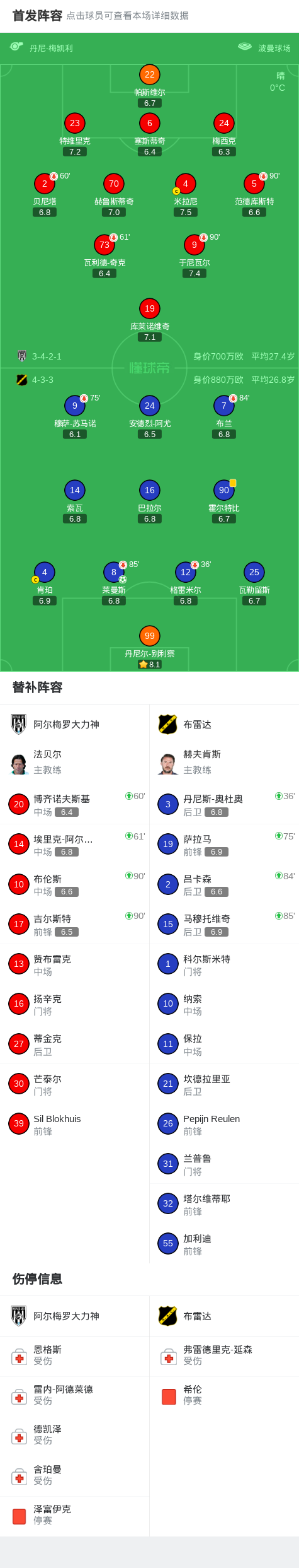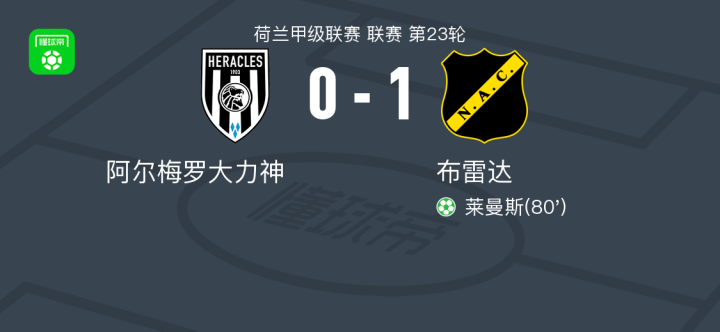布雷达1-0阿尔梅罗大力神,莱曼斯点射制胜战报bot @懂球帝02-15 01:32北京时间2月14日荷兰甲级联赛 联赛 第23轮,阿尔梅罗大力神主场对阵布雷达。布雷达莱曼斯破门。最终比分阿尔梅罗大力神 0-1 布雷达。点击查看本场比赛详细数据>>点击查看荷甲完整积分榜>>精彩瞬间第80分钟,布雷达球员莱曼斯罚入点球。 球队阵容 技术统计 展开更多