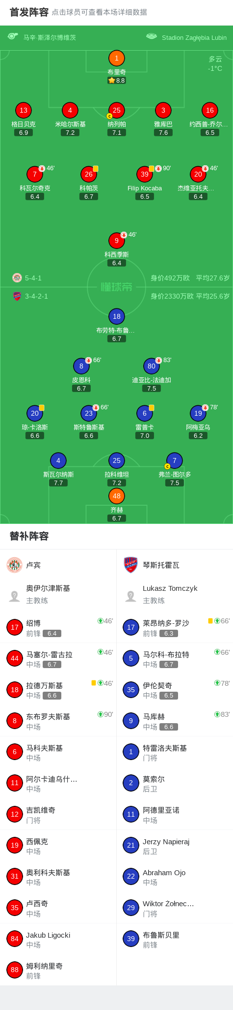 卢宾0-0琴斯托霍瓦,势均力敌战报bot @懂球帝02-15 02:25北京时间2月15日波兰足球超级联赛 联赛 第21轮,卢宾主场对阵琴斯托霍瓦。最终比分卢宾 0-0 琴斯托霍瓦。点击查看本场比赛详细数据>>点击查看波兰超完整积分榜>> 球队阵容 技术统计 展开更多