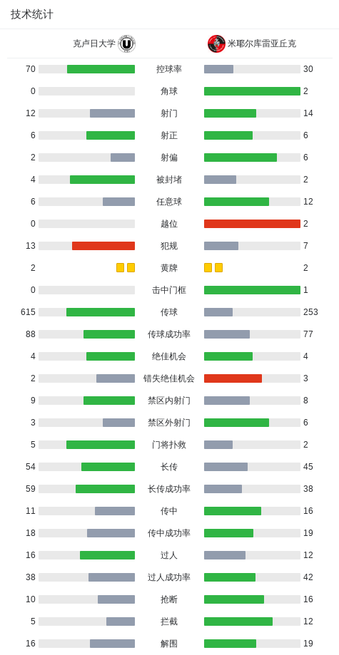 第39分钟,克卢日大学球员米卡诺维奇助攻德拉梅打入一球。