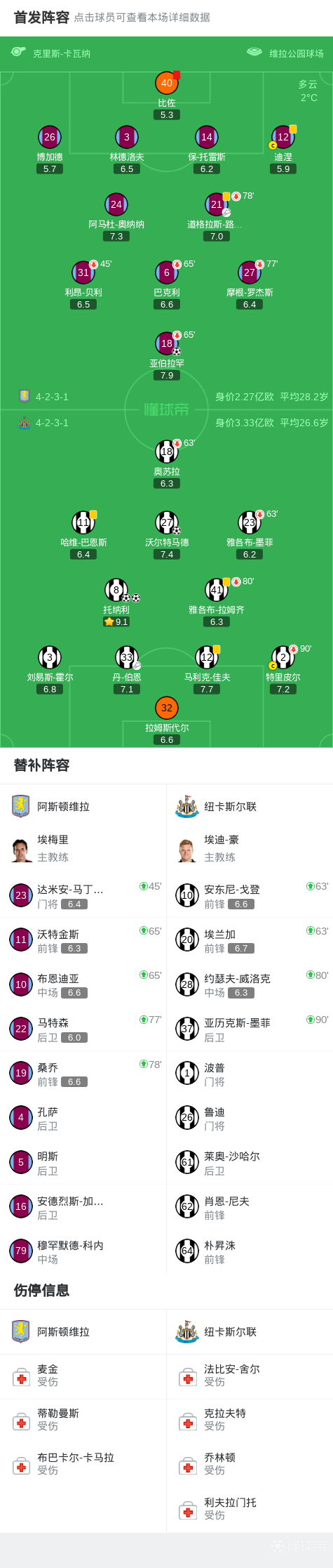 第88分钟,维拉后场失误,沃尔特马德破门扩大比分,维拉1-3纽卡