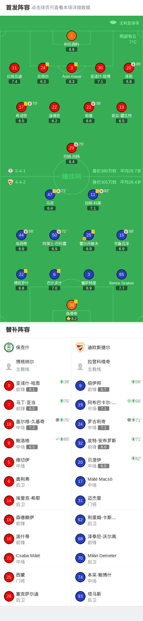 迪欧斯捷尔2-1保克什,阿布巴卡尔-凯塔点射,罗古利奇建功