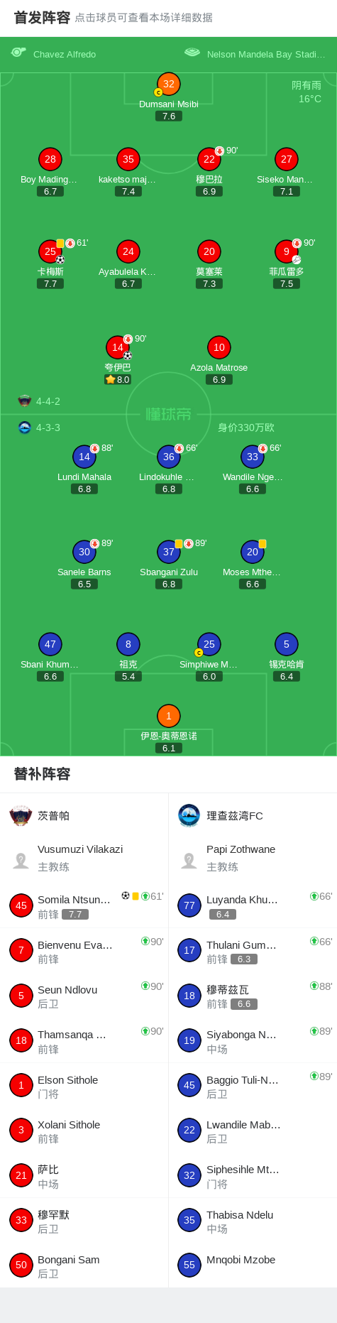 第67分钟,茨普帕球员菲瓜雷多助攻Somila Ntsundwana打入一球。
