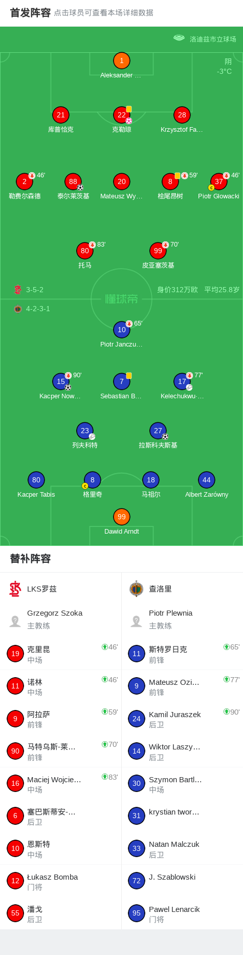 查洛里3-1罗德茨,Kacper Nowakowski、拉斯科夫斯基破门