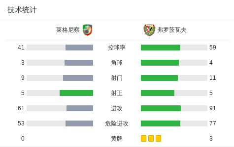 第18分钟,莱格尼察球员Daniel Stanclik打入一球。