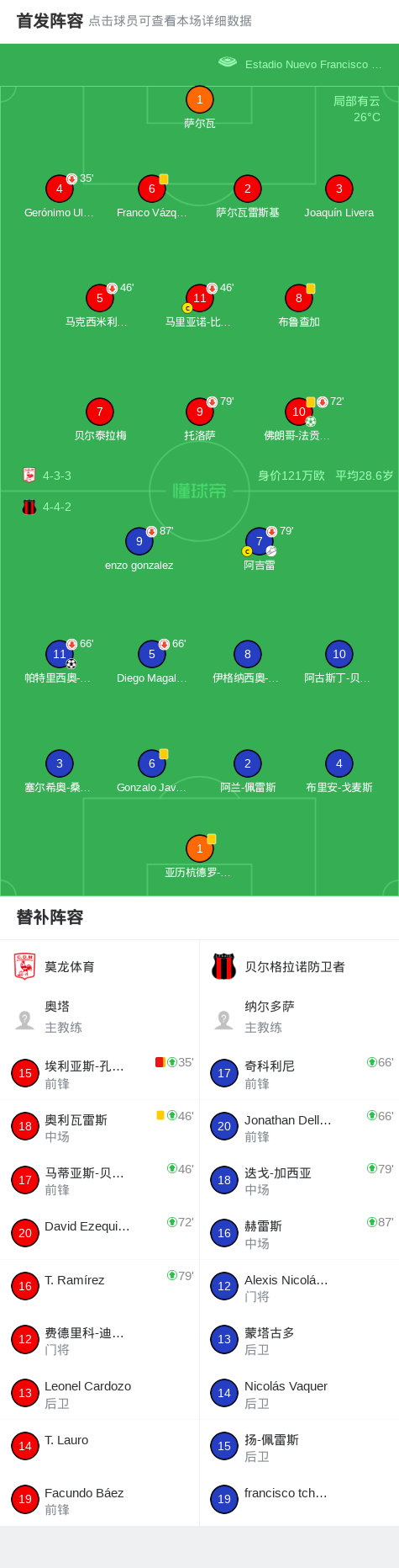 第32分钟,贝尔格拉诺防卫者球员阿吉雷助攻帕特里西奥-莫亚诺打入一球。