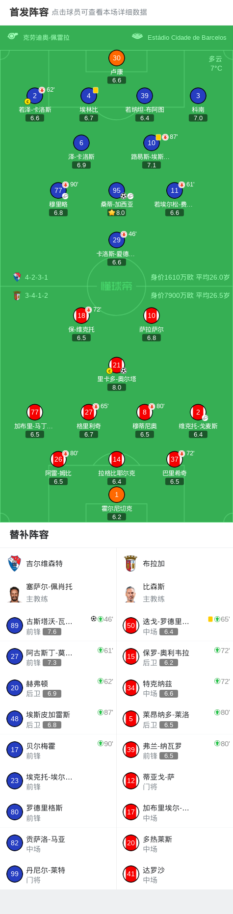 第21分钟,布拉加球员维克托-戈麦斯助攻里卡多-奥尔塔打入一球。