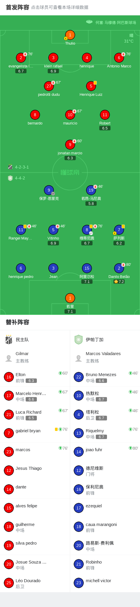 伊帕丁加1-0民主队GV,保罗-恩里克制胜战报bot @懂球帝02-15 08:10北京时间2月15日巴西米内罗甲级联赛 联赛 第8轮,民主队主场对阵伊帕丁加。伊帕丁加保罗-恩里克破门。最终比分民主队GV 0-1 伊帕丁加。点击查看本场比赛详细数据>>精彩瞬间第66分钟,伊帕丁加球员维蒂尼奥助攻保罗-恩里克打入一球。 球队阵容 技术统计 展开更多
