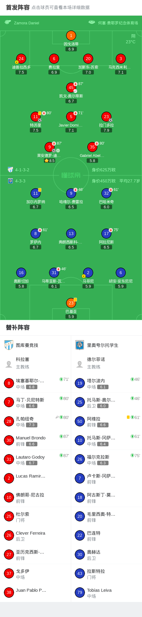 图库曼竞技4-0大胜里奥夸尔托学生,莱安德罗-迪亚斯双响,拉门多拉破门