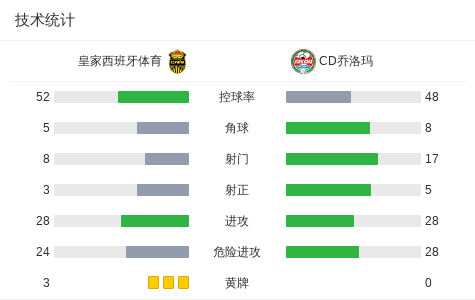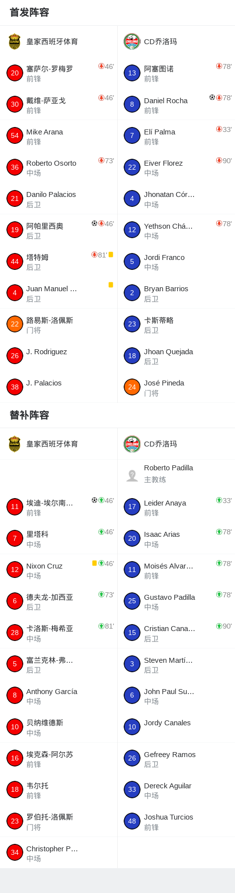 第36分钟,CD乔洛玛球员Daniel Rocha打入一球。