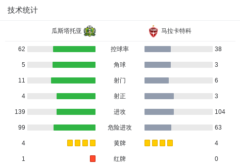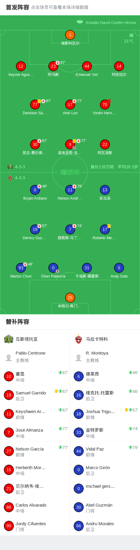 第83分钟,瓜斯塔托亚球队Yordin Hernández吃到红牌。