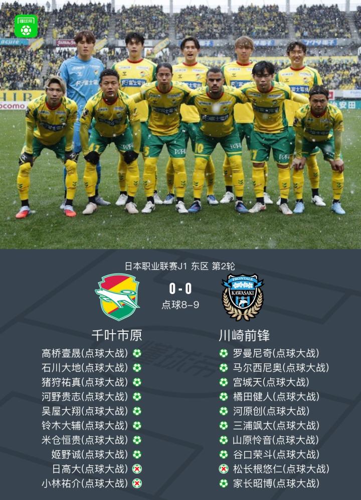 北京时间2月15日日本职业联赛J1东区第2轮,千叶市原主场对阵川崎前锋。最终千叶市原在点球大战中8-9不敌川崎前锋。