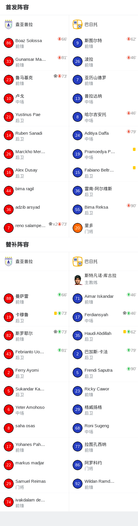 第66分钟,查亚普拉球员卢戈助攻reno salampessy打入一球。