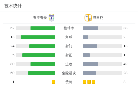 上半场补时第5分钟,查亚普拉球员卢戈助攻鲁马基克打入一球。
