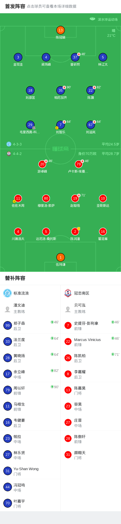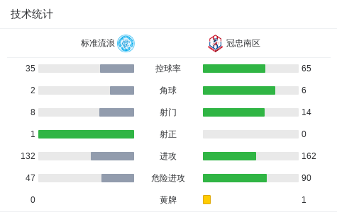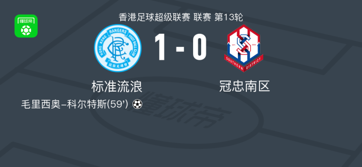 标准流浪1-0冠忠南区,毛里西奥-科尔特斯打进全场唯一进球战报bot @懂球帝02-15 16:53北京时间2月15日香港足球超级联赛 联赛 第13轮,标准流浪主场对阵冠忠南区。标准流浪毛里西奥-科尔特斯破门。最终比分标准流浪 1-0 冠忠南区。点击查看本场比赛详细数据>>点击查看港超完整积分榜>>精彩瞬间第59分钟,标准流浪球员毛里西奥-科尔特斯打入一球。 球队阵容 技术统计 展开更多