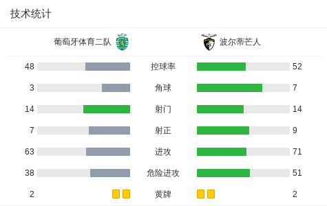 第71分钟,葡萄牙体育二队球员毛罗-科托助攻保罗-卡多索打入一球。