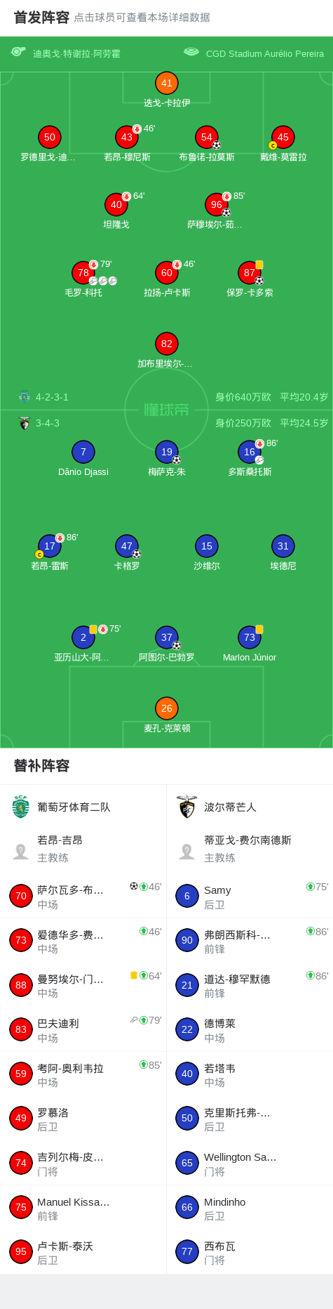 第81分钟,葡萄牙体育二队球员巴夫迪利助攻萨穆埃尔-茹斯托打入一球。