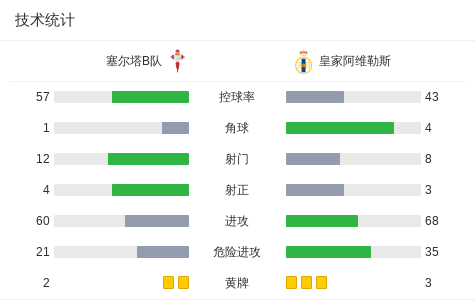 第43分钟,塞尔塔B队球员乌戈-冈萨雷斯打入一球。