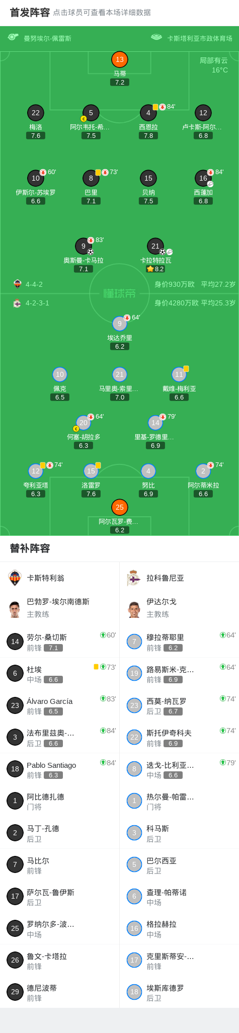 第63分钟,卡斯特利翁球员西蓬加助攻卡拉特拉瓦打入一球。