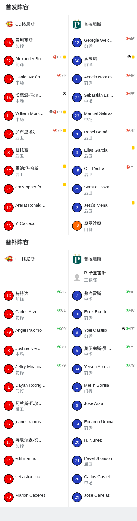 第82分钟,普拉坦斯球员Yoel Castillo打入一球。