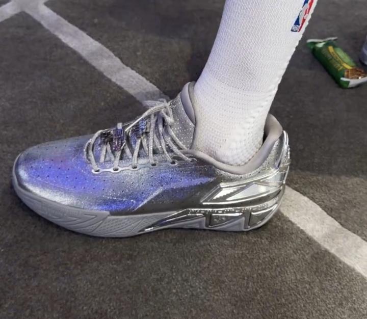北京时间2月16日,库里在全明星赛上脚穿KT11,这款球鞋是为庆祝克莱-汤普森与安踏的终身合同而推出的。