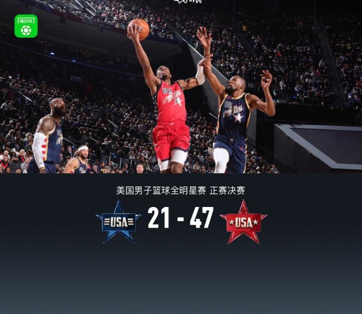 美国星条队米切尔6分1板,詹姆斯5分4板;美国星辰队马克西9分2板1助,爱德华兹8分4板2助。