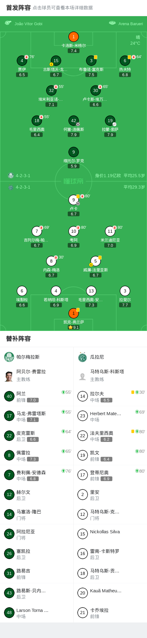 第77分钟,帕尔梅拉斯球员拉蒙-索萨助攻何塞-洛佩斯打入一球。