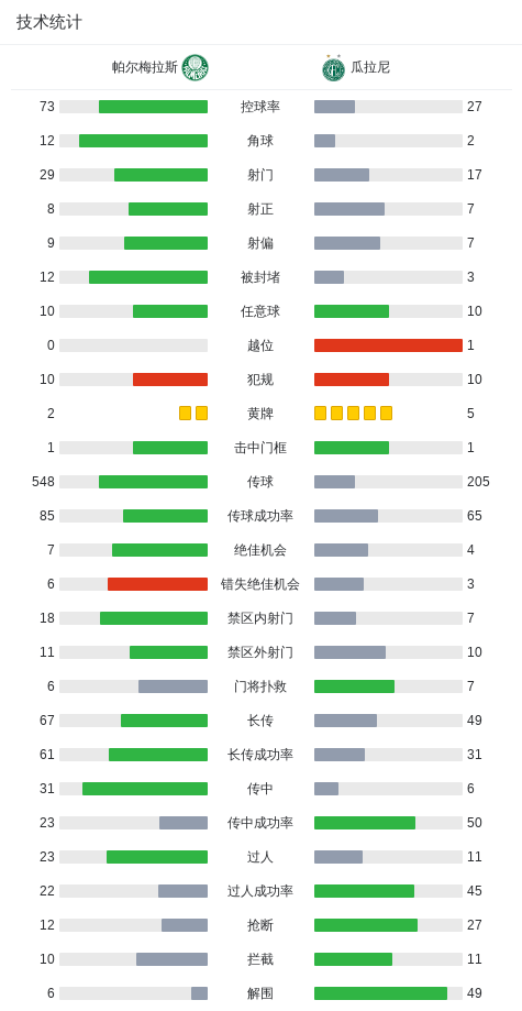 下半场补时第9分钟,帕尔梅拉斯球队João Miguel Barreto Martins吃到红牌。