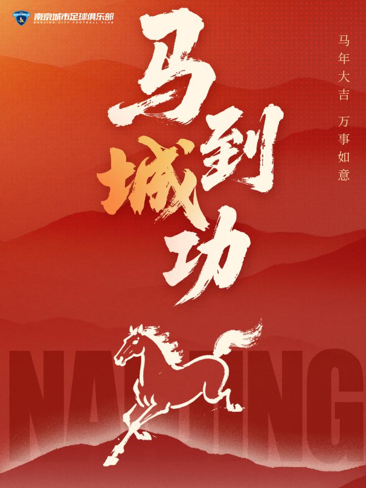 南京城市足球俱乐部祝大家新春快乐,马年大吉,万事如意! 南京城市足球俱乐部 南京城市足球俱乐部2026-02-16 13:52马年新春到,希望球队如骏马奔腾、昂首向前!南京城市足球俱乐部祝福广大球迷朋友们平安常伴、万事顺遂、喜乐常在、马上有钱!展开更多