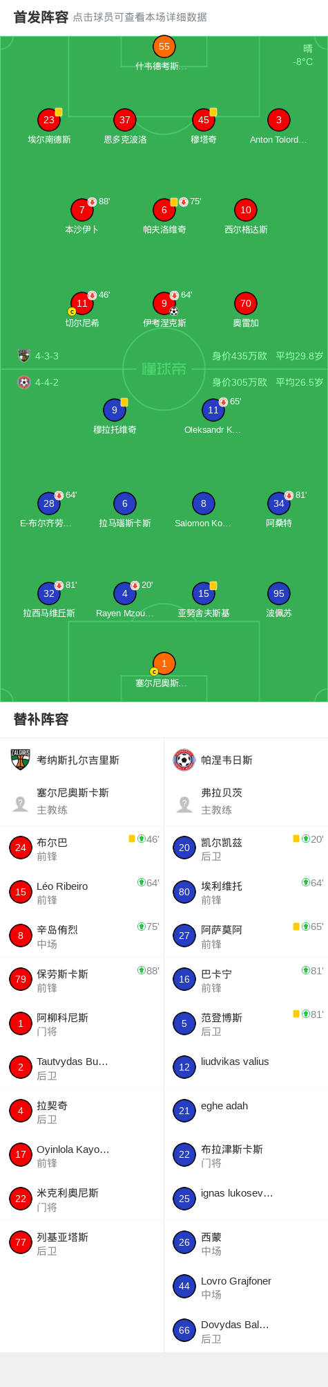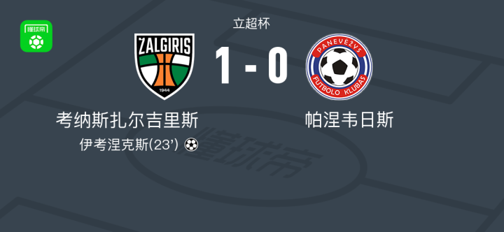 考纳斯扎尔吉里斯1-0帕涅韦日斯,伊考涅克斯制胜球战报bot @懂球帝02-16 23:13北京时间2月16日立超杯,考纳斯扎尔吉里斯对阵帕涅韦日斯。考纳斯扎尔吉里斯伊考涅克斯破门。最终比分考纳斯扎尔吉里斯 1-0 帕涅韦日斯。点击查看本场比赛详细数据>>精彩瞬间第23分钟,考纳斯扎尔吉里斯球员伊考涅克斯打入一球。 球队阵容 技术统计 展开更多