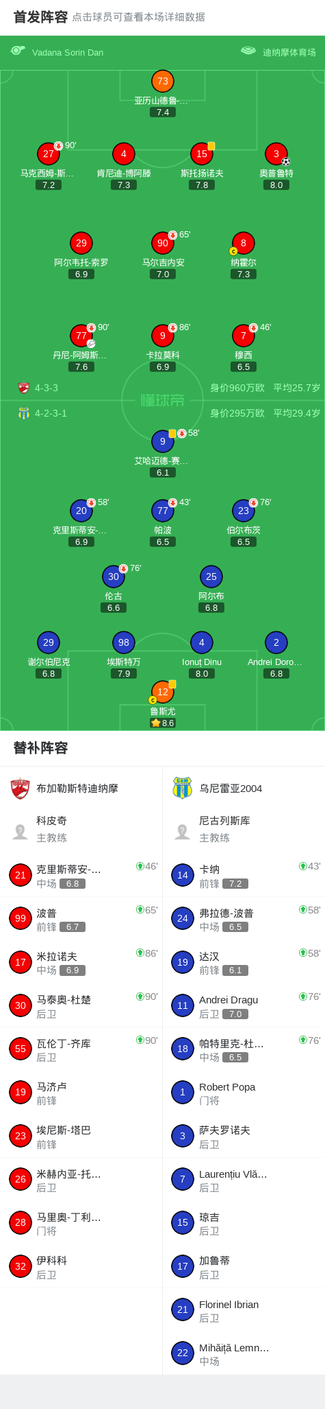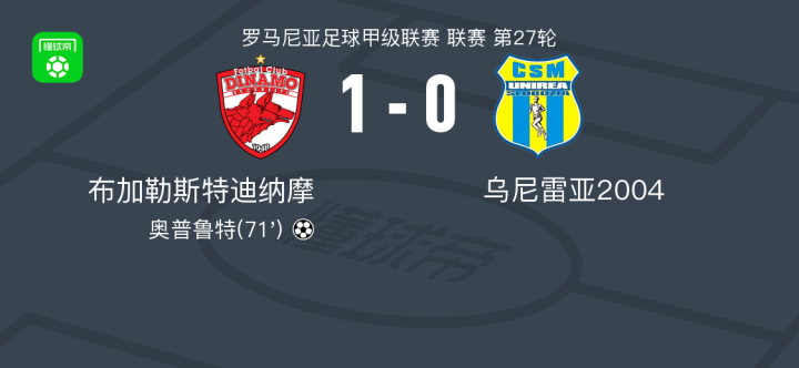 北京时间2月17日罗马尼亚足球甲级联赛 联赛 第27轮,布加勒斯特迪纳摩主场对阵乌尼雷亚2004。布加勒斯特迪纳摩奥普鲁特破门。最终比分布加勒斯特迪纳摩 1-0 乌尼雷亚2004。