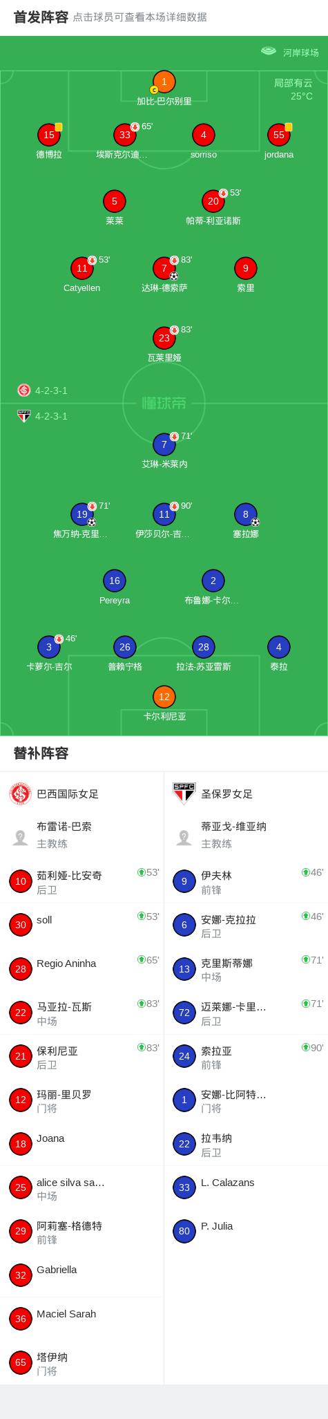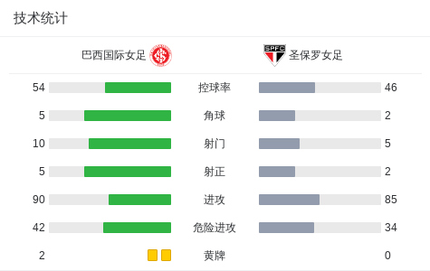 圣保罗女足2-1逆转巴西国际女足,焦万纳-克里韦拉里、塞拉娜破门