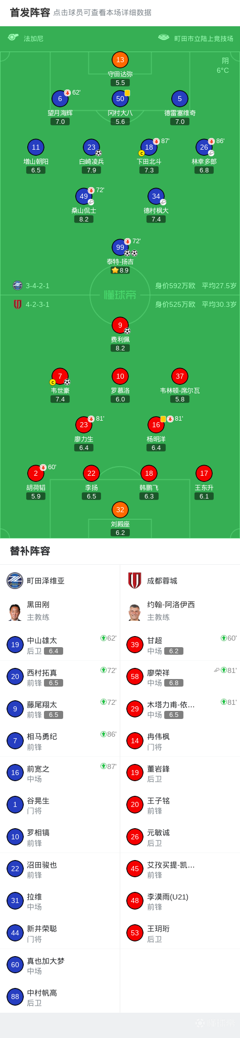 第32分钟,町田门将守田达弥停球失误,韦世豪将球铲进球门,成都1-2扳回一城!