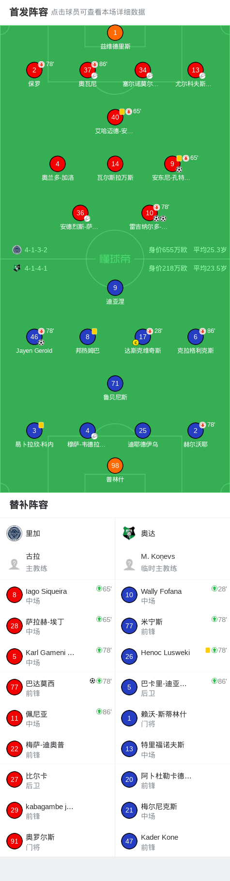 里加4-1大胜奥达,雷吉纳尔多-拉米雷斯双响,巴达莫西建功