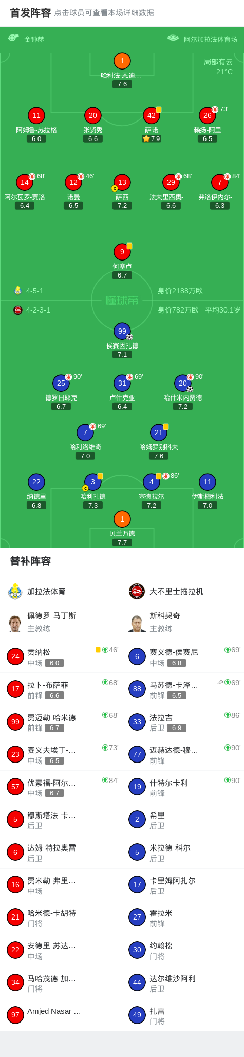 北京时间2月18日亚足联冠军精英联赛 联赛阶段 第8轮,加拉法体育对阵大不里士拖拉机。大不里士拖拉机哈什米内贾德破门,侯赛因扎德破门。最终比分加拉法体育 0-2 大不里士拖拉机。