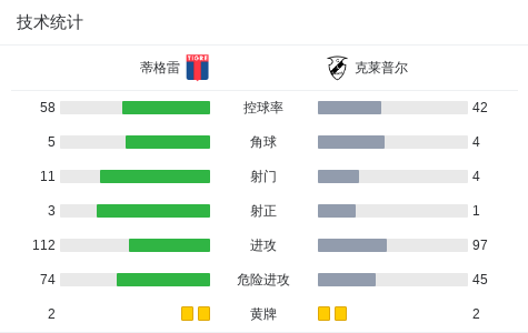 蒂格雷2-0克莱普尔,拉蒙-阿里亚斯破门,戴维-罗梅罗锁定胜局