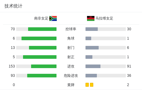南非女足2-0马拉维女足,霍尔韦尼破门,bonolo mokoma锁定胜局