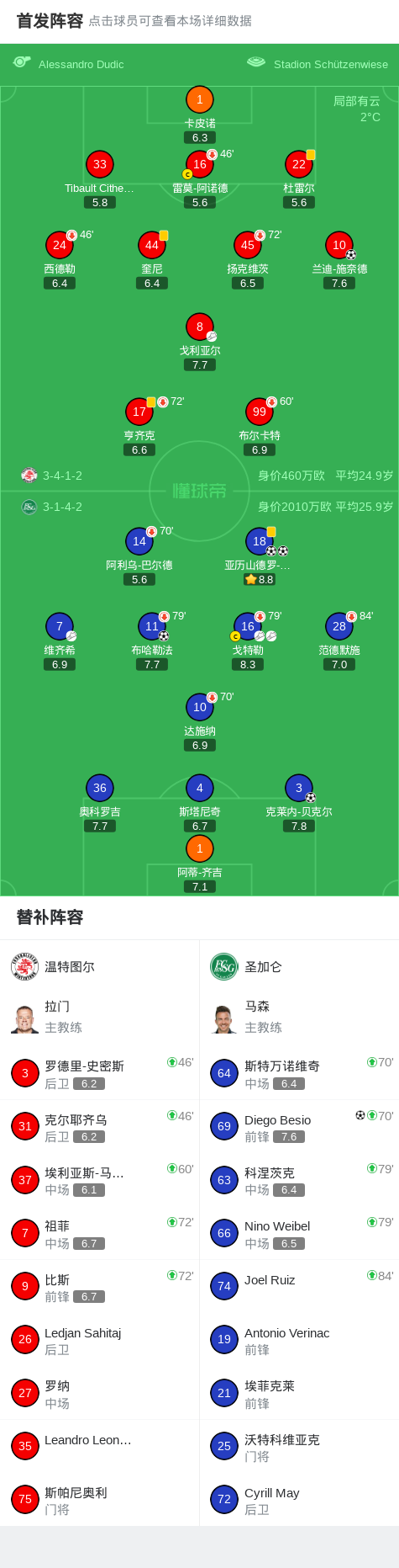 北京时间2月19日瑞士足球超级联赛 联赛 第20轮,温特图尔主场对阵圣加仑。温特图尔兰迪-施奈德破门。圣加仑亚历山德罗-福格特梅开二度,布哈勒法破门,克莱内-贝克尔破门,Diego Besio破门。最终比分温特图尔 1-5 圣加仑。